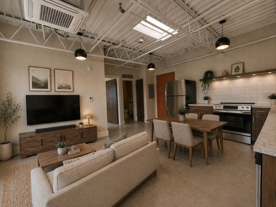 Wake up to natural light, quiet design, and the rhythm of downtown—just steps from fresh groceries, good coffee, and everything you need.